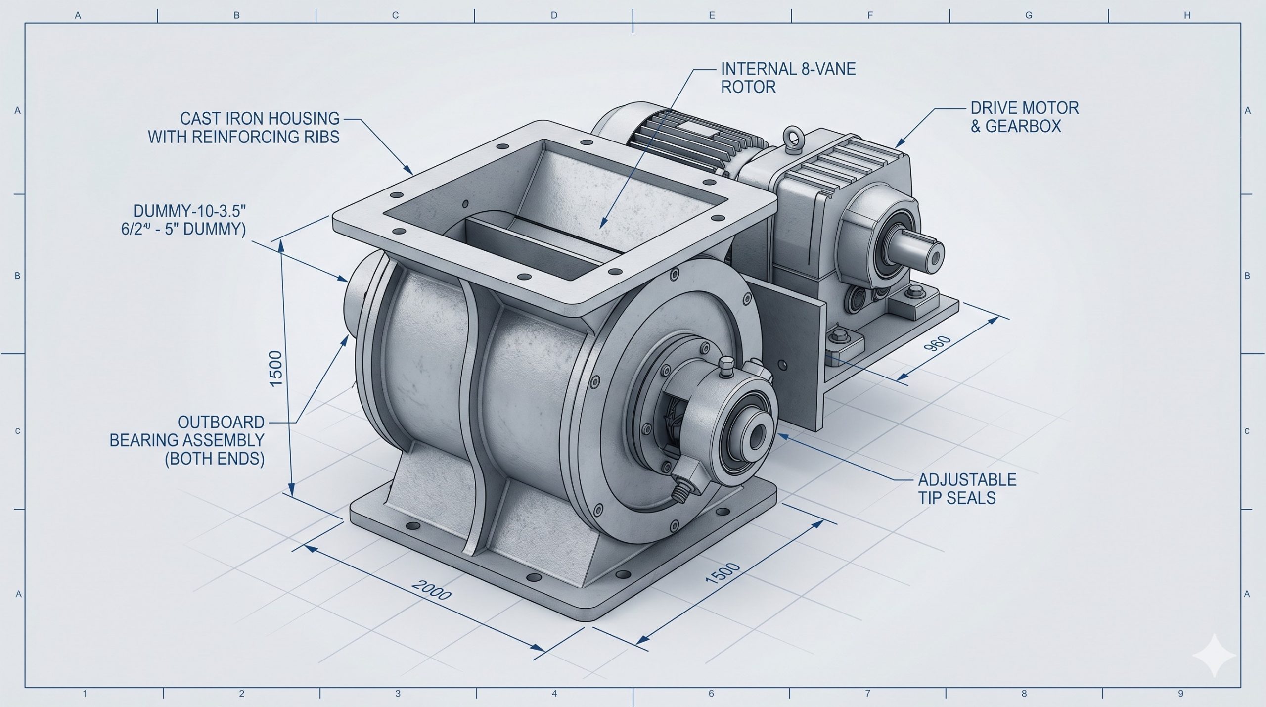 Doebritz heavy-duty rotary airlock valve: Precision CNC machined housing, minimal air leakage (<2 cc/rev), ATEX certified for powder/pellet handling. OEM supplier for global plants. Get quote now.
